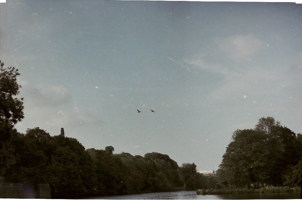 After touching up the image with the clone-stamp and adjusting the brightness we could say that we’ve got the most out of the scanner (and the frame). Zooming in you can the significant noise in the sky, and the halos around the birds caused by the sharpening algorithm in the scanner.