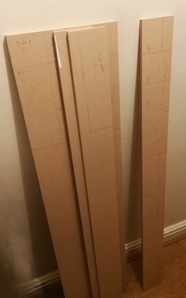 Width of the baffle for both speakers was 4” (~102mm), I don’t have a table saw, and cutting many metres of straight 4” wood was never going to happen. Luckily my local hardware store was able to cut the wood for me. I planned the design around this so that my manual sawing would have the fewest opportunities to ruin the build. I only had to cut strips to length, and cut out the side panels.