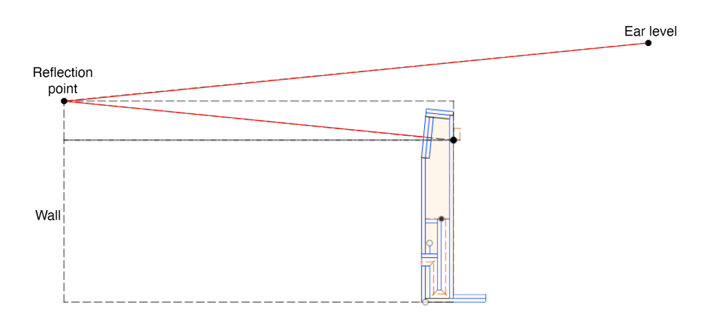 Diagram of sound reflection off of the wall. Red line shows the approximate reflection path.