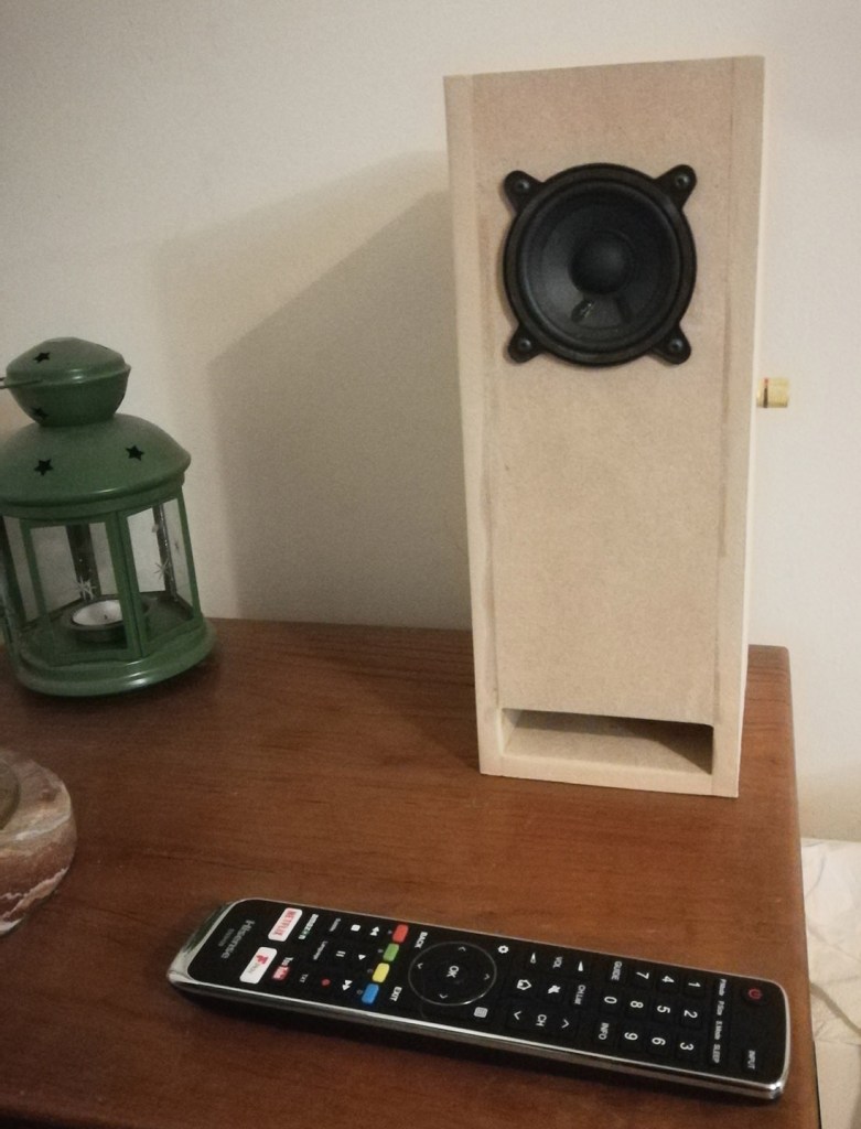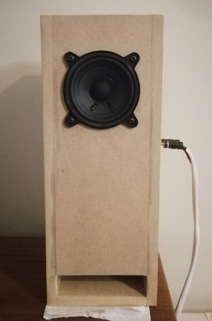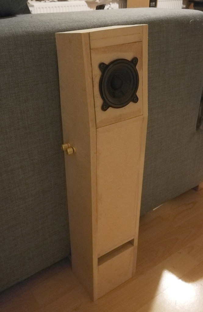 First on my list of things to finish off with them is to get some primer on. The MDF won’t last long without something to protect it. However, that will involve quite a bit more sanding and a few clear days when I can paint outside, and then the final colour can go on. After that, I’d like to measure the output of the speakers and see if I can improve the sound. I have some DSP capability on the amplifier, but I might also try to implement a baffle step correction circuit.