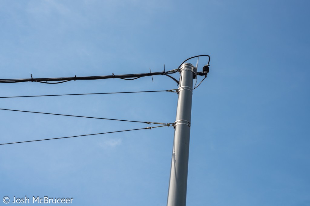 None of these images show chromatic aberration, this would likely be apparent on the image of the tram powerlines.