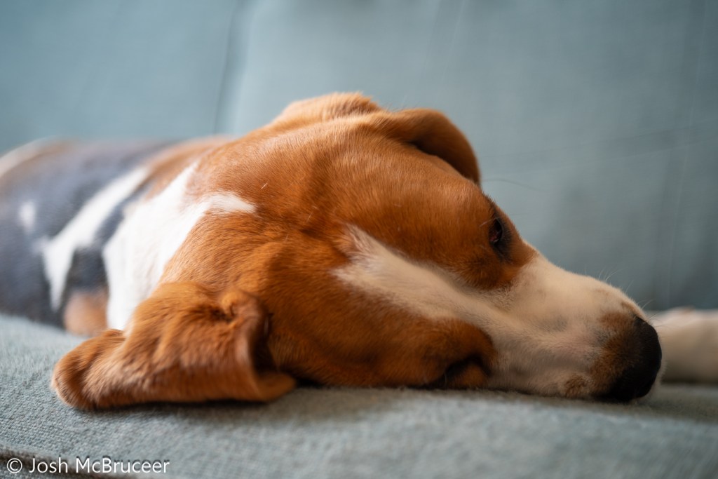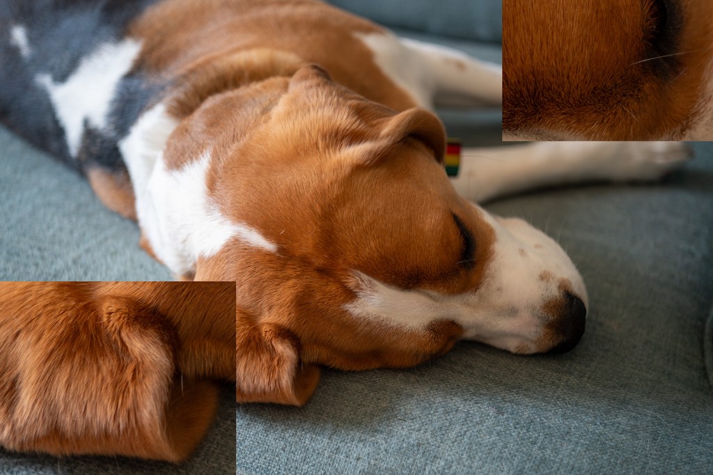 The bokeh image is of running water in a canal and was taken with the lens set to close focus at f/2.8. The bokeh is bubbly with distinct outer highlights which indicates over-corrected spherical aberration, sometimes this is considered attractive such as in the Meyer Optik Goerlitz Trioplan lens, however, the effect is less strong in this Tessar. This also leads to the distracting out-of-focus elements in the last image of the dog (my beagle, Saturn) where a line out of the plane of focus is blurred into a sharply defined feature.