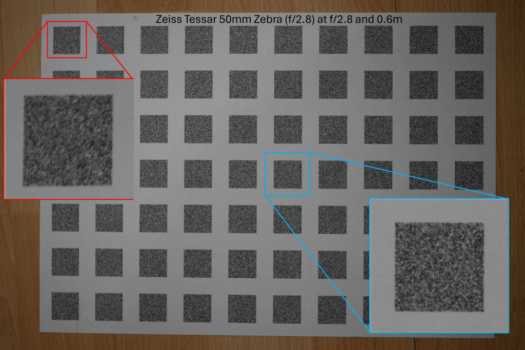 I wrote some software (this actually took ages) and printed off some test charts to work out exactly what my vintage Zeiss Tessar 50mm 2.8 lens is doing to my images.